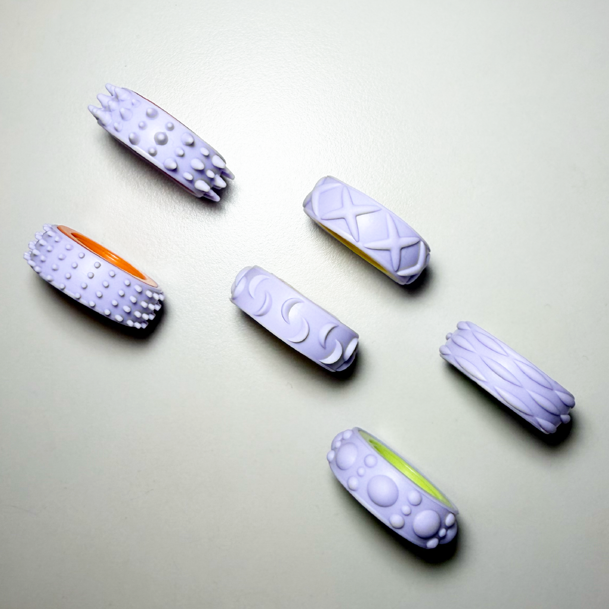 每一款戒指都有不同的表面紋理, 提供不同層次的觸覺刺激: